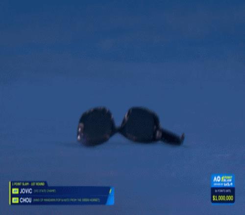 周杰伦将墨镜一摘,导播给到墨镜特写,随后周杰伦被对手轰出ACE出局。