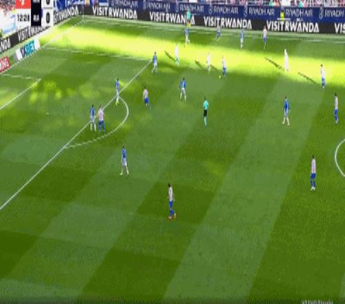 第16分钟,阿尔瓦雷斯分球小西蒙尼右路劲射,门将将球扑出